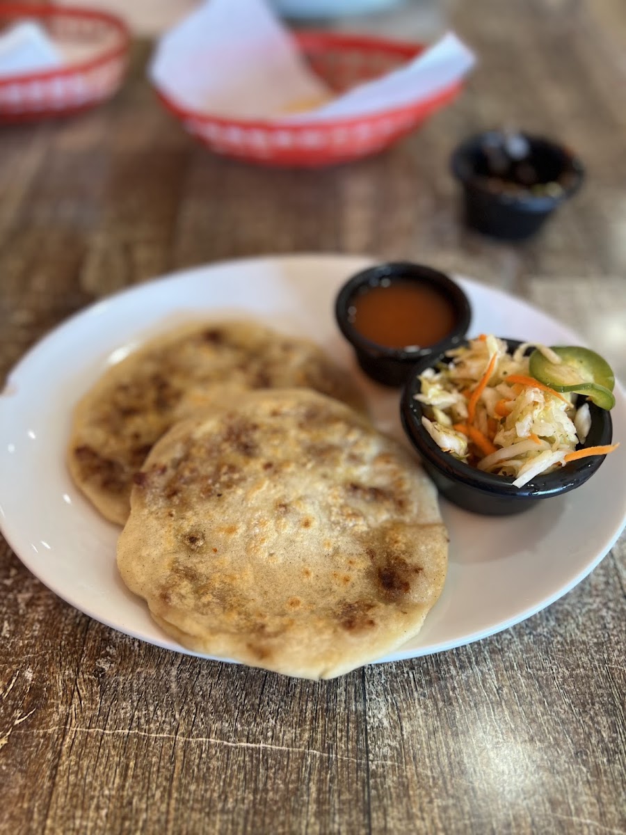 Upon entering El Chilacatazo, I was a bit worried by the ostentatious decor, complete with rainbow-colored walls and sombreros hanging everywhere. The fact there were three different menus -- none of which seemed to be the primary one -- deepened my vexation. When I was served the chips and salsa though, my tune changed drastically. This place has *the best* salsa I have ever had, which is a high praise considering I could tell you exactly which place was unseated (and they had a kick-ass tomatillo salsa). El Chilacatazo's salsa was deep, earthy, and smoky; you could see the flecks of char suspended within. It was decently spicy, what I would call exactly the right level of spice: enough to demand attention but not enough to drown out the rest of the experience. It was full of freshly chopped onions and cilantro. The chips were excellent too. I would guess they were fried in house, and they were thick and crunchy without being too hard and sharp. They had their own flavor but weren't oily at all. Honestly, I could stop the review here and tell you to visit just for that experience. But I was hungry, as I'd just sat through several hours in the courthouse waiting for jury duty appointments, so I am obligated to inform you of my further orders. I finally decided on the shrimp tacos and a sampling of two pupusas, one loroco and one chicharron. It took a bit longer than I had expected for them to come out, but it was quite a busy day and it wasn't enough to be a problem. When the tacos arrived, the first thing I noticed was the absolute heap of guacamole slapped upon each one. I suspect the tortillas were made in house as well, and if not they clearly have an excellent supplier. The tacos were filled to the brim with shrimp, guacamole, and everything else you could imagine, and were stupendous. The whole thing tasted so juicy and fresh, and I downed all three before the pupusas had a chance to make an appearance. My favorite thing about these tacos was the variety of textures. The chewy tortillas, stringy cheese, plump shrimp, and refreshing guacamole all contributed to a sensory symphony in three (identical nonetheless wonderful) movements. If I had to complain, I did think the shrimp could use more spice, as they were mostly bare, but that was mostly supplied by everything else in the taco. Before discussing the pupusas, I must disclaim that I have only ever had pupusas once before, which I considered a solid five-star meal. My initial sampling of these pupusas felt very different, and while I cannot claim which was more authentic or was made in a superior fashion, I can describe my subjective experience and enjoyment. Initially, I thought the pupusas were quite undercooked, in particular the loroco one. It was almost still doughy and much lighter than the other one, as can be seen in the picture. This put me off at first and so I transitioned to the chicharron. This one I thoroughly enjoyed. It also felt a little undercooked, but I could feel the grain of masa (which I consider a positive) and could taste both the breading and filling, both of which were delicious. Returning to the loroco, I realized its softness was mostly due to the incredible amount of cheese and realized it was quite pleasant as well. Ultimately I really liked both of the pupusas. The curtido also undercut my expectations but was good too. It tasted almost exactly like kimchi. Clearly, my trepidation was for naught. El Chilacatazo's cheerful and colorful interior grew on me as I progressed through my meal, and I now associate it with truly stupendous cuisine. Their menu is somewhere between your average traditional Mexican joint and a gourmet, modern taqueria. They stick to their roots to produce excellent food, and provide enough inspiration to not just catch but hold the attention, and hearts, of their customers.